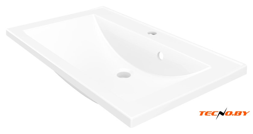 80x40 см, с одной чашей, накладной, фарфор, крепление на столешницу