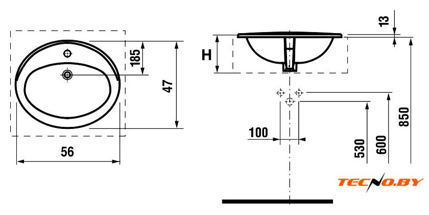 57x37.5 см, с одной чашей, накладной, санитарная керамика, крепление на столешницу
