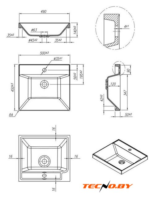 врезной/накладной, искусственный камень, крепление на столешницу
