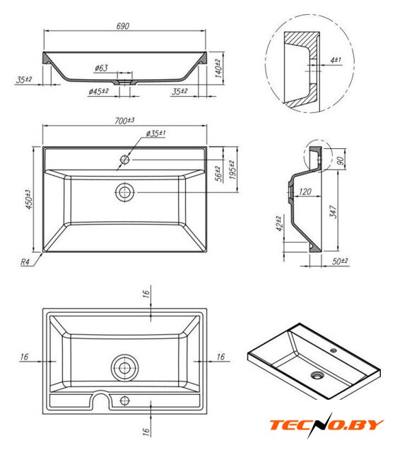 | Конструкция | накладной, врезной |