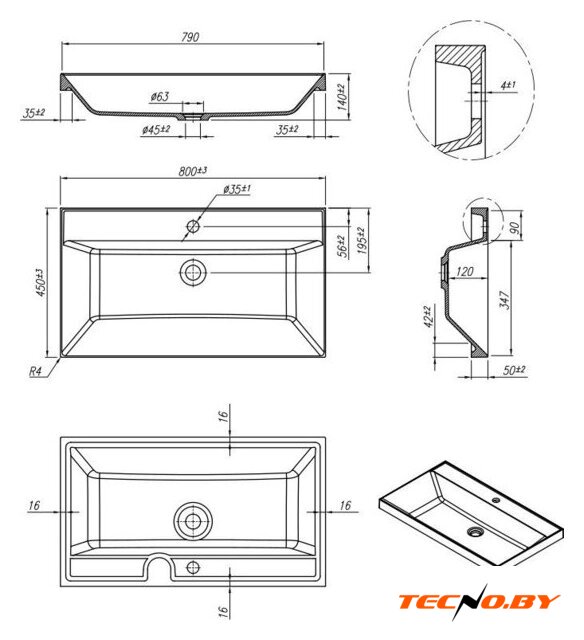 | Конструкция | накладной, врезной |