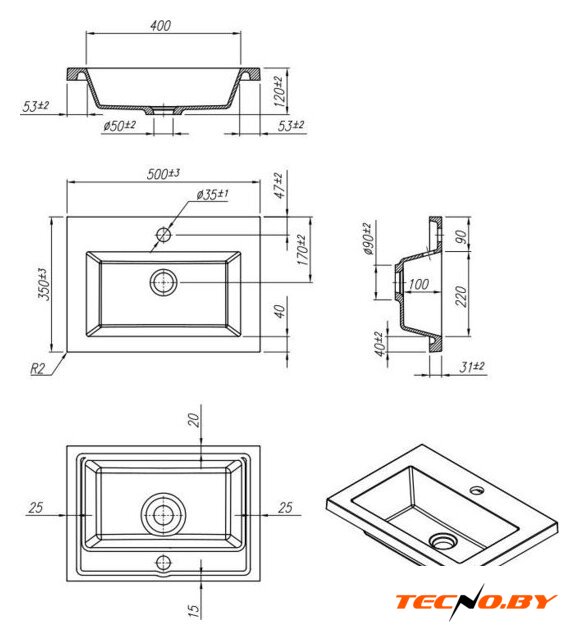 55x35 см, с одной чашей, накладной, санитарная керамика, крепление на столешницу