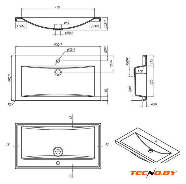 90x45 см, с одной чашей, врезной/накладной, искусственный камень, крепление на столешницу