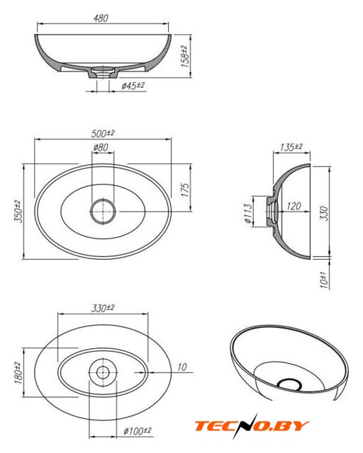 48x37 см, чаша, накладной, санитарная керамика, крепление на столешницу