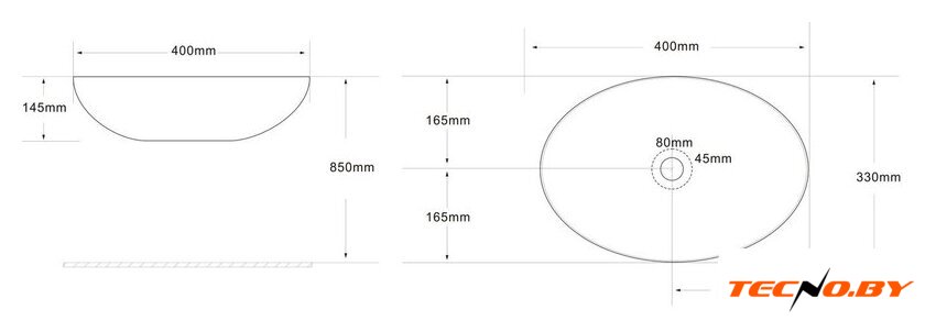 45x33 см, с одной чашей, накладной, санитарная керамика, крепление на мебельный шкаф/на столешницу