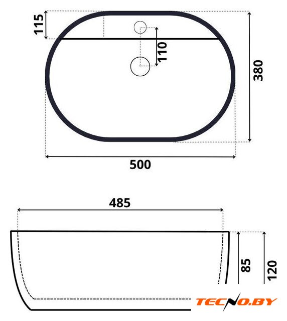 41x34 см, чаша, накладной, санитарная керамика, крепление на столешницу