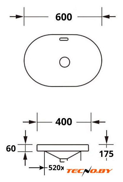 60x40 см, чаша, накладной, фарфор, крепление на столешницу