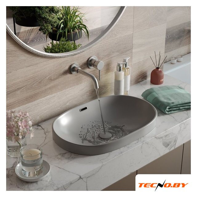 60x40 см, чаша, врезной, фарфор, крепление на столешницу