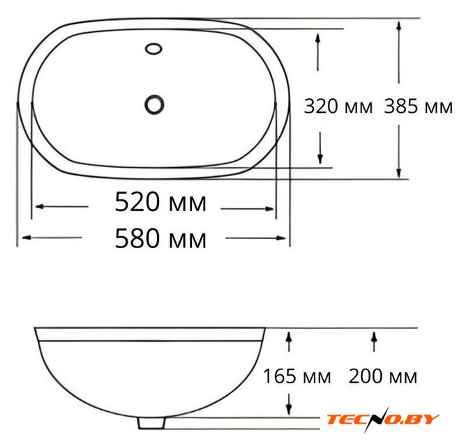 48x37 см, чаша, накладной, фарфор, крепление на столешницу