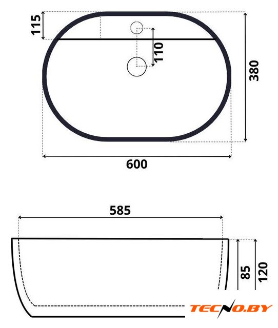 60x48 см, чаша, накладной, фарфор, крепление на столешницу