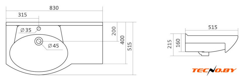 Умывальник с одной чашей легко установить на мебельный шкаф, обеспечивая оптимальное использование пространства ванной комнаты. Конструкция накладного типа позволяет быстро и без осложнений произвести монтаж. Благодаря наличию отверстия под смеситель, вы сможете выбрать подходящий смеситель, который наилучшим образом впишется в концепцию вашего интерьера.