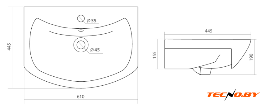 50x24 см, с одной чашей, накладной/настенный, фарфор, крепление на столешницу/на стену