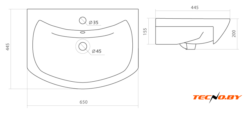 60.5x45.6 см, врезной, санитарная керамика, крепление на мебельный шкаф/на столешницу