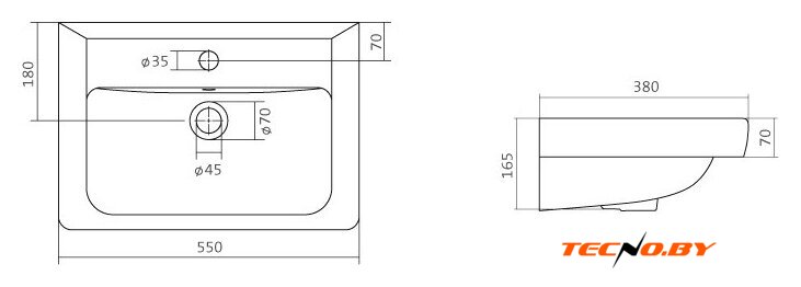 50x24 см, с одной чашей, накладной/настенный, фарфор, крепление на столешницу/на стену