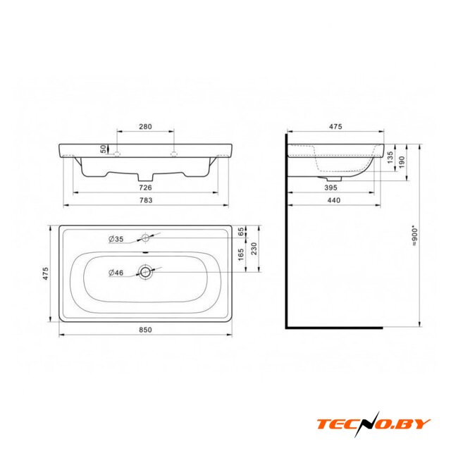 70.1x48.1 см, с одной чашей, накладной, искусственный камень, крепление на мебельный шкаф/на столешницу