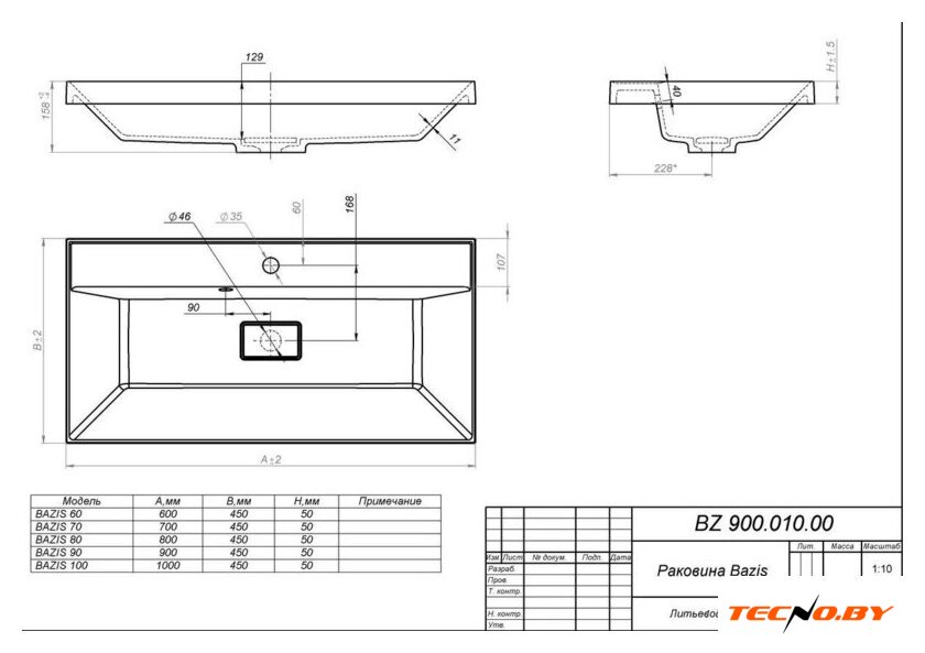 70x45 см, с одной чашей, накладной, искусственный мрамор