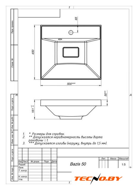65x45 см, с одной чашей, накладной, искусственный мрамор