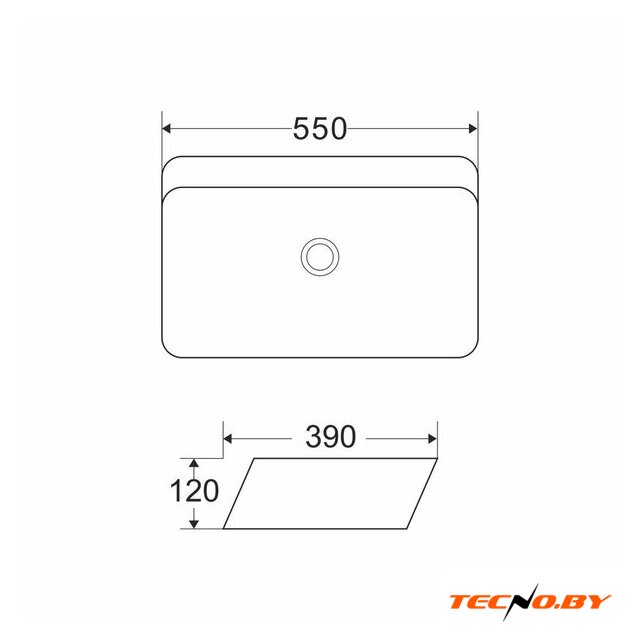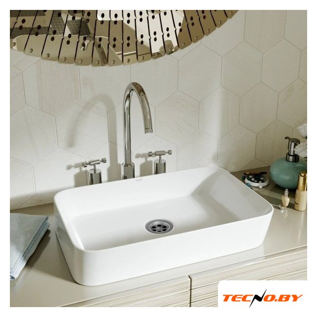 55x45 см, с одной чашей, накладной, фарфор, крепление на столешницу