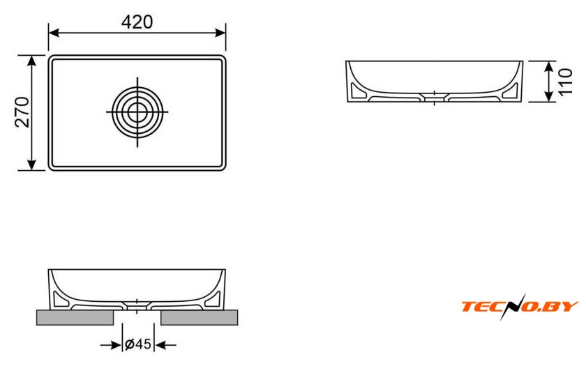 Элегантные размеры умывальника (ширина: 42 см, глубина: 27 см, высота: 11 см) делают его идеальным для использования в небольших и средних по размеру ванных комнатах. Легкость и универсальность установки умывальника на столешницу позволяет воплотить в жизнь самые смелые дизайнерские идеи и создать комфортабельное пространство. 📏