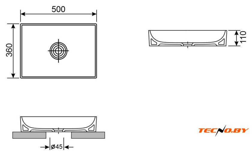 С габаритами 50 см в ширину, 36 см в глубину и 11 см в высоту, умывальник отлично подходит для ванных комнат с ограниченным пространством. Несмотря на свою компактность, он не теряет в функциональности и предоставляет достаточно места для комфортного использования.