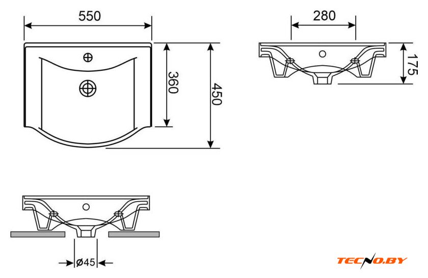 Конструкция умывальника накладная, что позволяет легко закрепить его как на стене, так и на мебельном шкафу. Такой гибкий способ установки гарантирует, что умывальник идеально впишется в любое пространство. В комплекте имеется необходимое крепление, так что вам не придется беспокоиться о дополнительных расходах на монтаж.