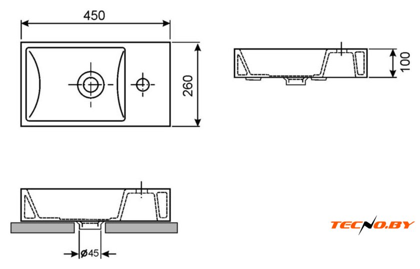 В комплект поставки входит надежный крепеж, обеспечивающий простоту монтажа и стабильность эксплуатации. Отсутствие слива и декоративных элементов, таких как пьедестал или полки, предоставляет свободу в подборе аксессуаров и дополнений, которые будут соответствовать вашему стилю и функциональным предпочтениям.