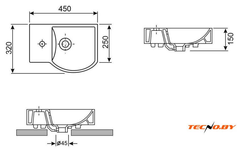 Одной из важных особенностей умывальника является наличие отверстия для смесителя, что облегчает установку и налаживание водоснабжения. Также предусмотрен перелив для предотвращения возможного переполнения чаши водой, что добавляет дополнительную безопасность и удобство в использовании. Хотя полотенцедержателя не предусмотрено, вы легко сможете установить его рядом для большего комфорта.