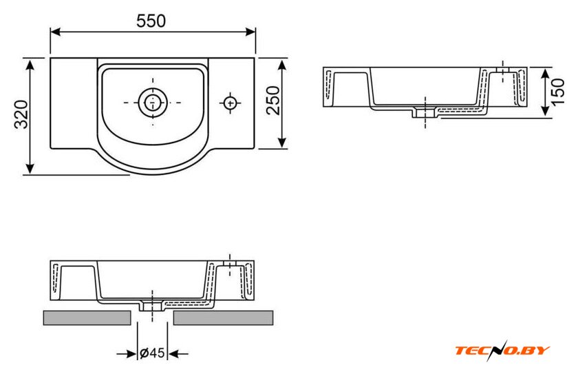 Этот накладной умывальник предоставляет множество возможностей для монтажа: его можно установить как на стену, так и на столешницу. В комплекте уже предусмотрены все необходимые крепежи для быстрой и легкой установки, что делает процесс монтажа максимально комфортным. Обратите внимание, что кронштейны и сливная арматура не входят в комплект, поэтому рекомендуется приобретать их отдельно.