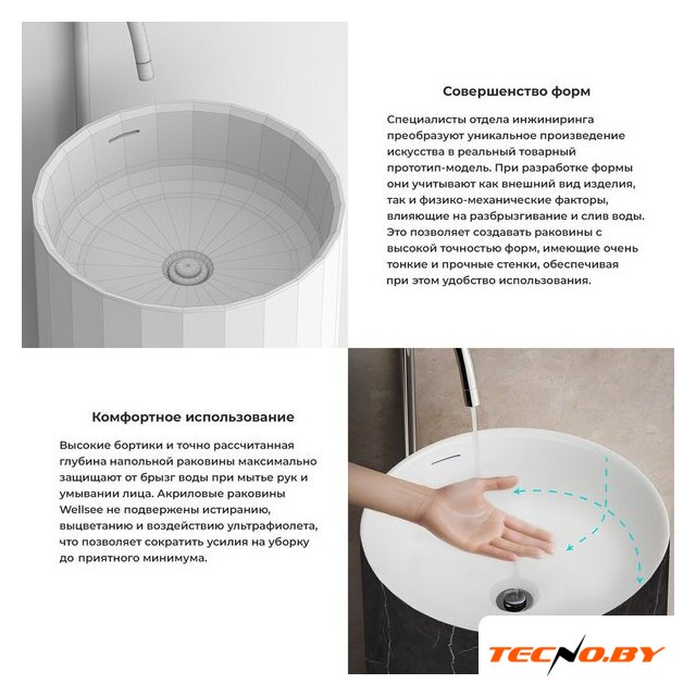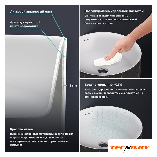Оснащенный системой перелива, умывальник обеспечивает защиту от нежелательных протеканий и добавляет дополнительную гарантию безопасности. Антибактериальное покрытие акрила поддерживает высокий уровень гигиеничности, предотвращая размножение бактерий и сохраняя поверхность чистой и свежей. Это делает его идеальным выбором для семей, ценящих не только стиль, но и безопасность.
