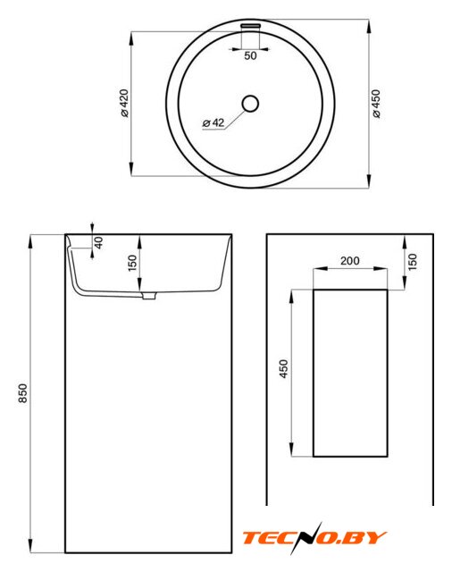 Этот круглый умывальник предназначен для напольной установки, что делает его идеальным выбором для просторных ванных комнат. Он не имеет отверстий под смеситель, что позволило сохранить идеальную форму чаши, а также предоставило свободу выбора отдельностоящего смесителя по вашему вкусу.