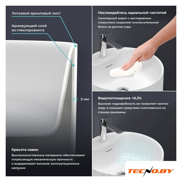 Изготовленный из акрилового материала, этот умывальник обещает стать долговечным спутником вашей ванной комнаты. Акрил известен своими прочностными характеристиками и стойкостью к механическим повреждениям. Его антибактериальное покрытие обеспечивает дополнительный уровень защиты, что делает умывальник безопасным для всей семьи. 🛡️