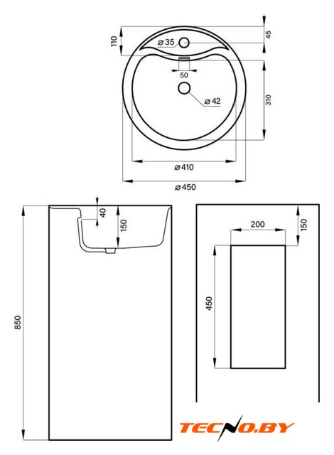 С размерами 45 см в ширину и глубину, а также с высотой 85 см, умывальник идеально вписывается в любую ванную комнату. Его компактные размеры позволяют сэкономить пространство, не жертвуя при этом функциональностью и комфортом использования. Это делает его отличным выбором и для больших помещений, и для более скромных по размеру ванных.