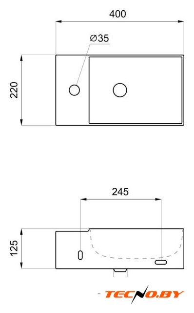 40x22 см, мини-мойка (рукомойник), накладной/настенный, фарфор, крепление на столешницу/на стену