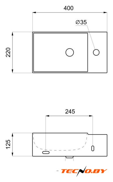 40x22 см, мини-мойка (рукомойник), накладной/настенный, фарфор, крепление на столешницу/на стену
