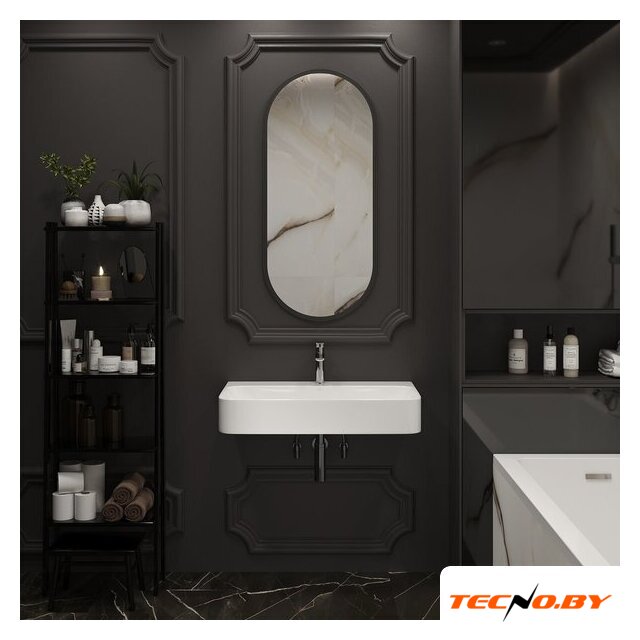 89.5x46.5 см, с одной чашей, накладной, искусственный мрамор, крепление на мебельный шкаф