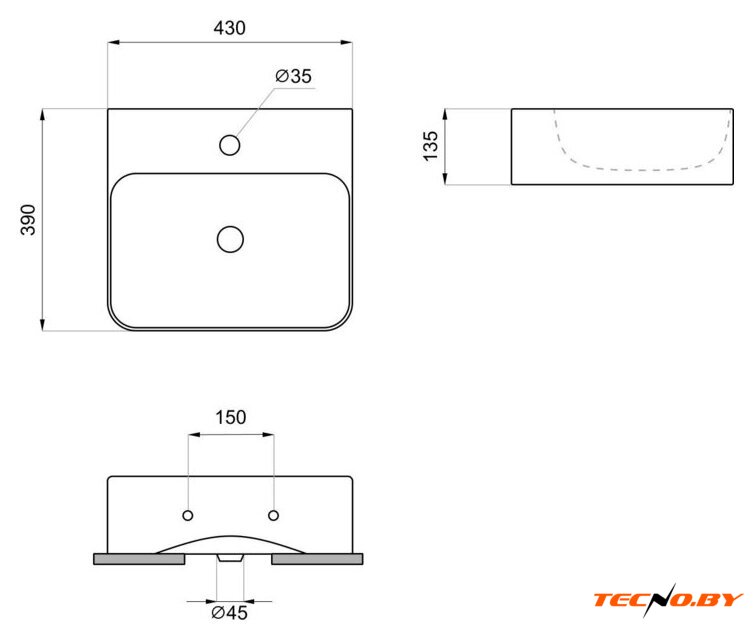 43x39 см, с одной чашей, накладной/настенный, фарфор, крепление на столешницу/на стену