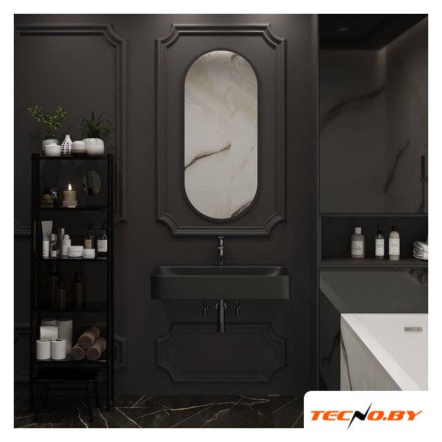119.8x50.1 см, с одной чашей, накладной, искусственный камень, крепление на мебельный шкаф