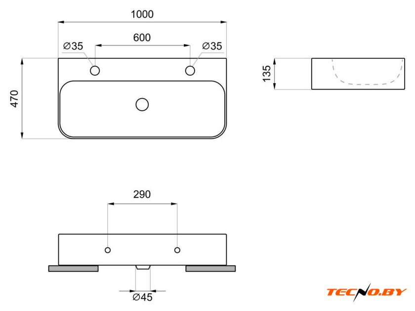 100x47 см, на две персоны (одна чаша), накладной/настенный, фарфор, крепление на столешницу/на стену
