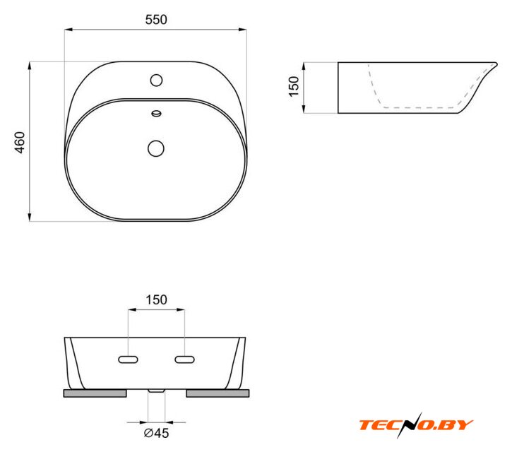 45x40 см, с одной чашей, накладной/настенный, фарфор, крепление на столешницу/на стену