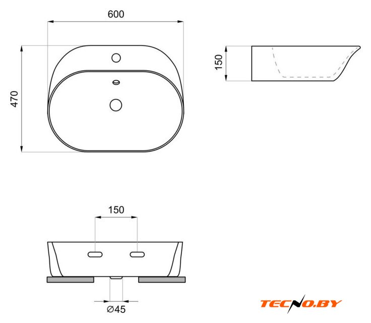 60x46 см, с одной чашей, врезной, санитарная керамика, крепление на столешницу