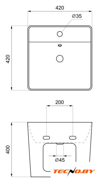 90x45 см, с одной чашей, накладной, санитарная керамика, крепление на столешницу