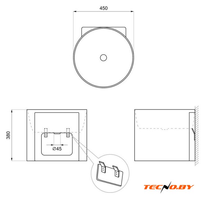40x40 см, с одной чашей, напольный, фарфор, крепление на пол