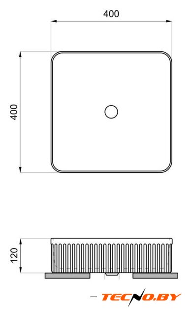 40x40 см, с одной чашей, накладной, фарфор, крепление на столешницу