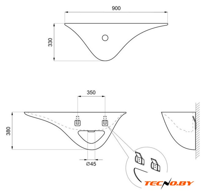 45x42 см, с одной чашей, настенный, фарфор, крепление на стену
