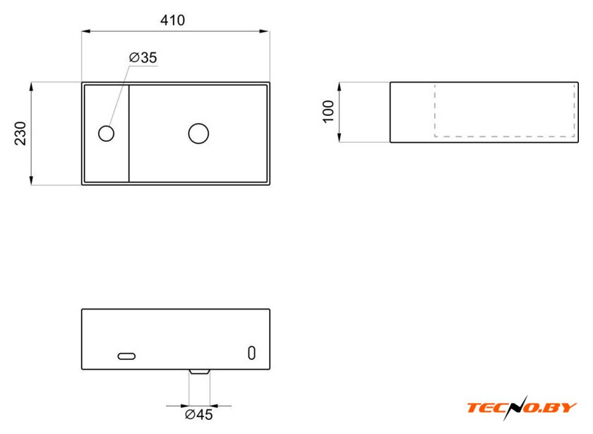 41x23 см, мини-мойка (рукомойник), накладной/настенный, фарфор, крепление на столешницу/на стену