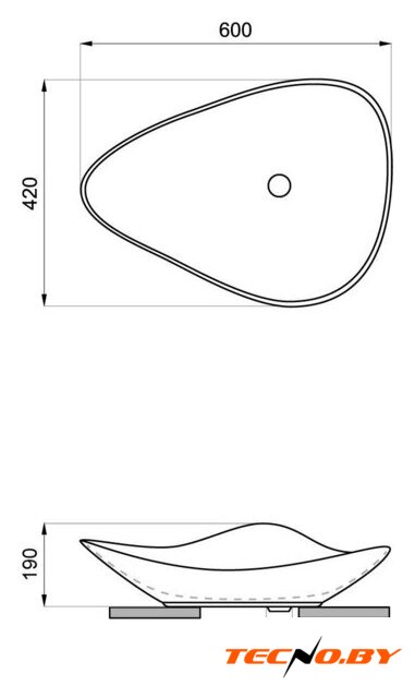 50x35 см, с одной чашей, накладной, фарфор, крепление на столешницу