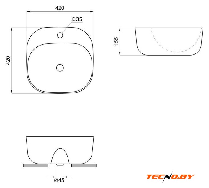 55x45 см, с одной чашей, накладной, санитарная керамика, крепление на столешницу