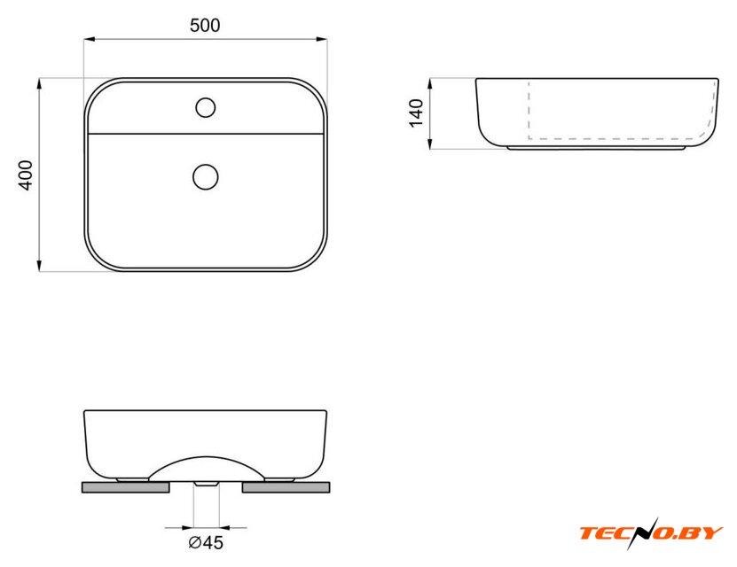 45x26 см, с одной чашей, накладной, санитарная керамика, крепление на столешницу/на стену