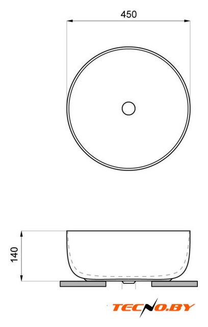 45x45 см, с одной чашей, накладной, фарфор, крепление на столешницу