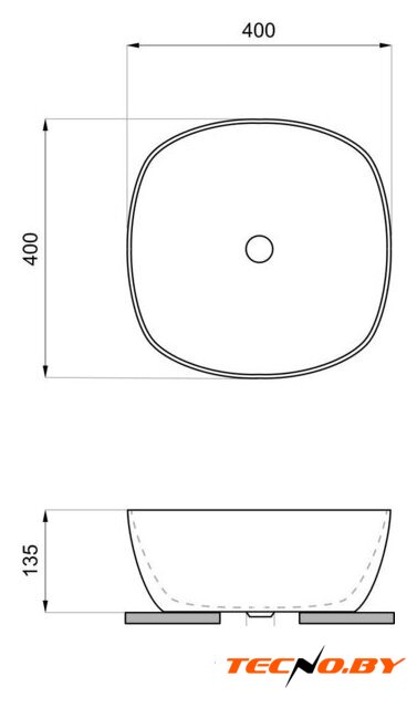 40x40 см, с одной чашей, накладной, фарфор, крепление на столешницу